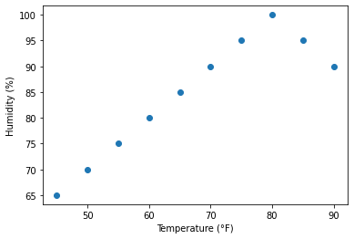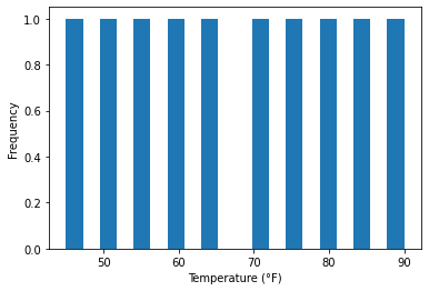 plt.xlabel('Temperature (°F)')