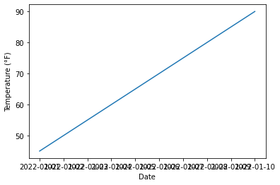 plt.ylabel('Temperature (°F)')
