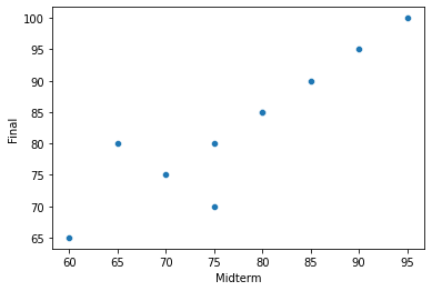 sns.scatterplot(x='Midterm', y='Final', data=df)